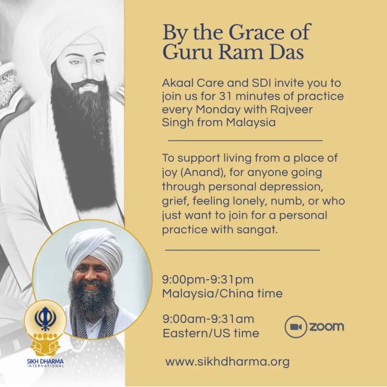 Join SDI and Akaal Care for weekly 31 minutes of meditation and chanting hosted by Rajveer Singh. This is a sacred space to cultivate joy (Anand) and find comfort amidst loneliness or grief.